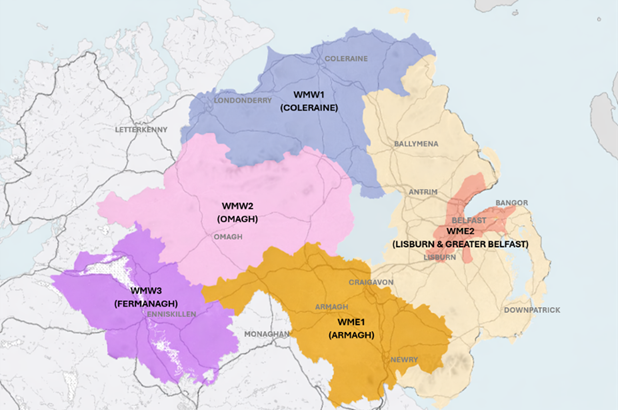This arrangement involves the splitting of Eastern Region into two Contract Areas: WME1 (Armagh) & WME2 (Lisburn and Greater Belfast) thus increasing the current arrangement of four Contract Areas to five.